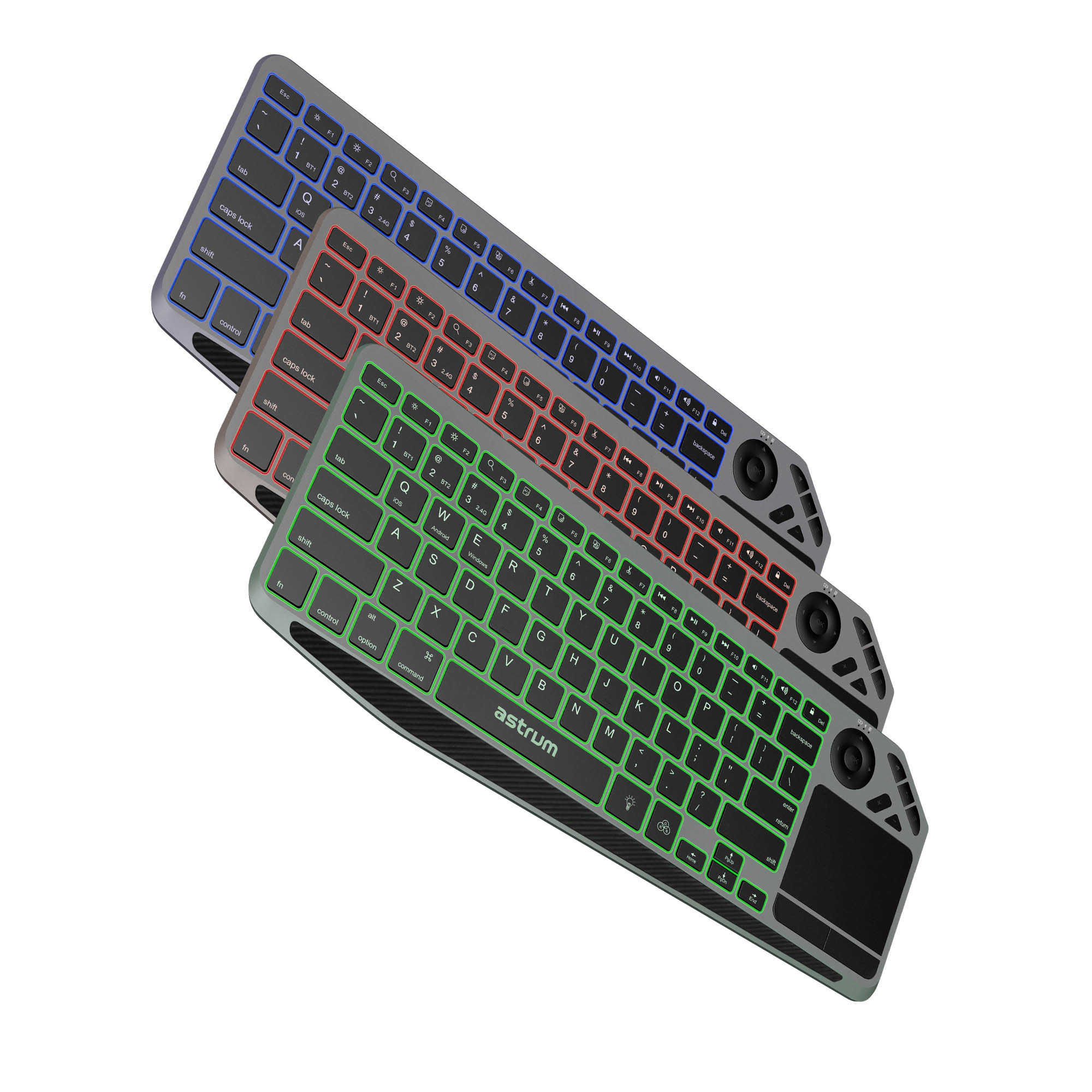 Wireless keyboard with touchpad, multi-pairing, silent keys, spill resistance, RGB led backlit illumination.