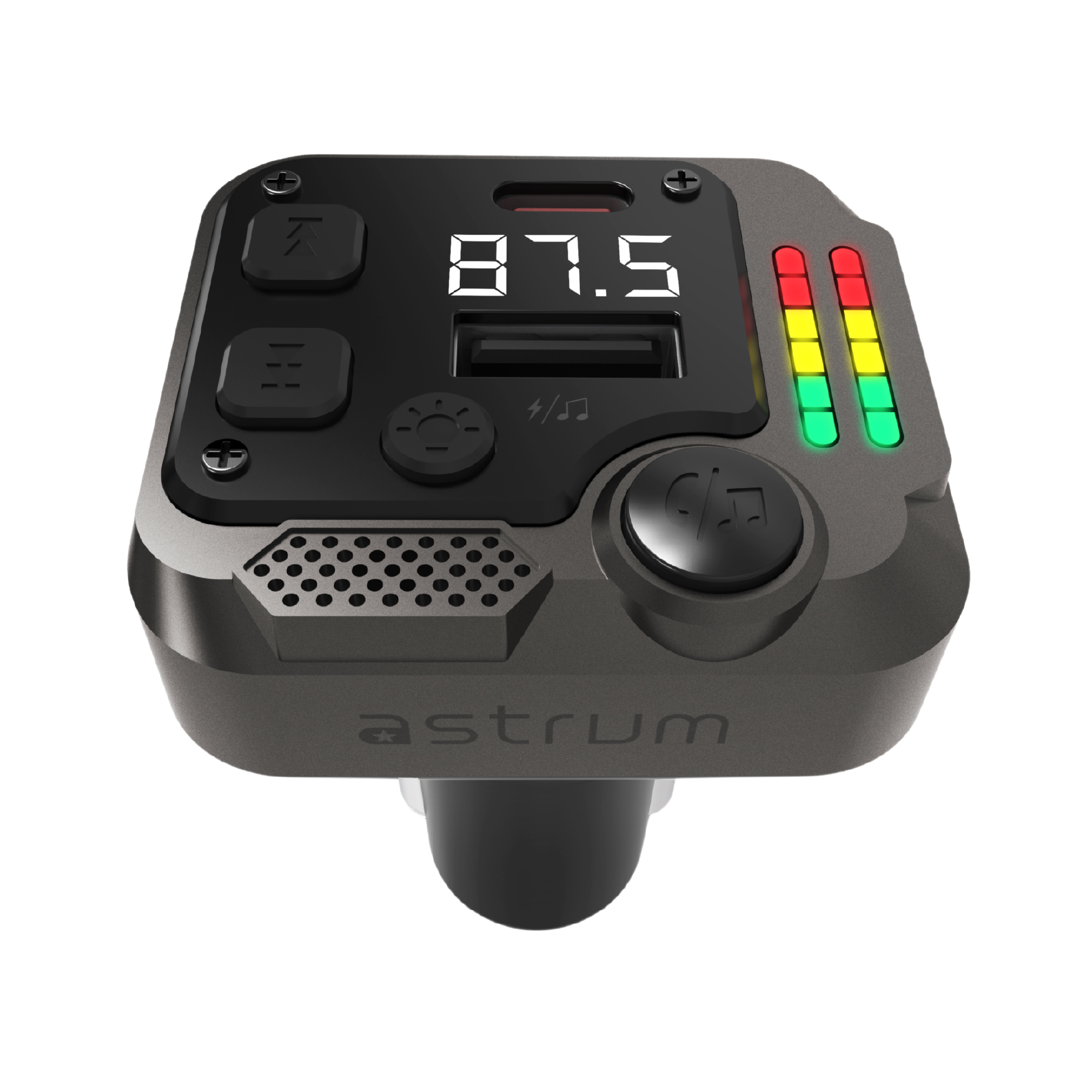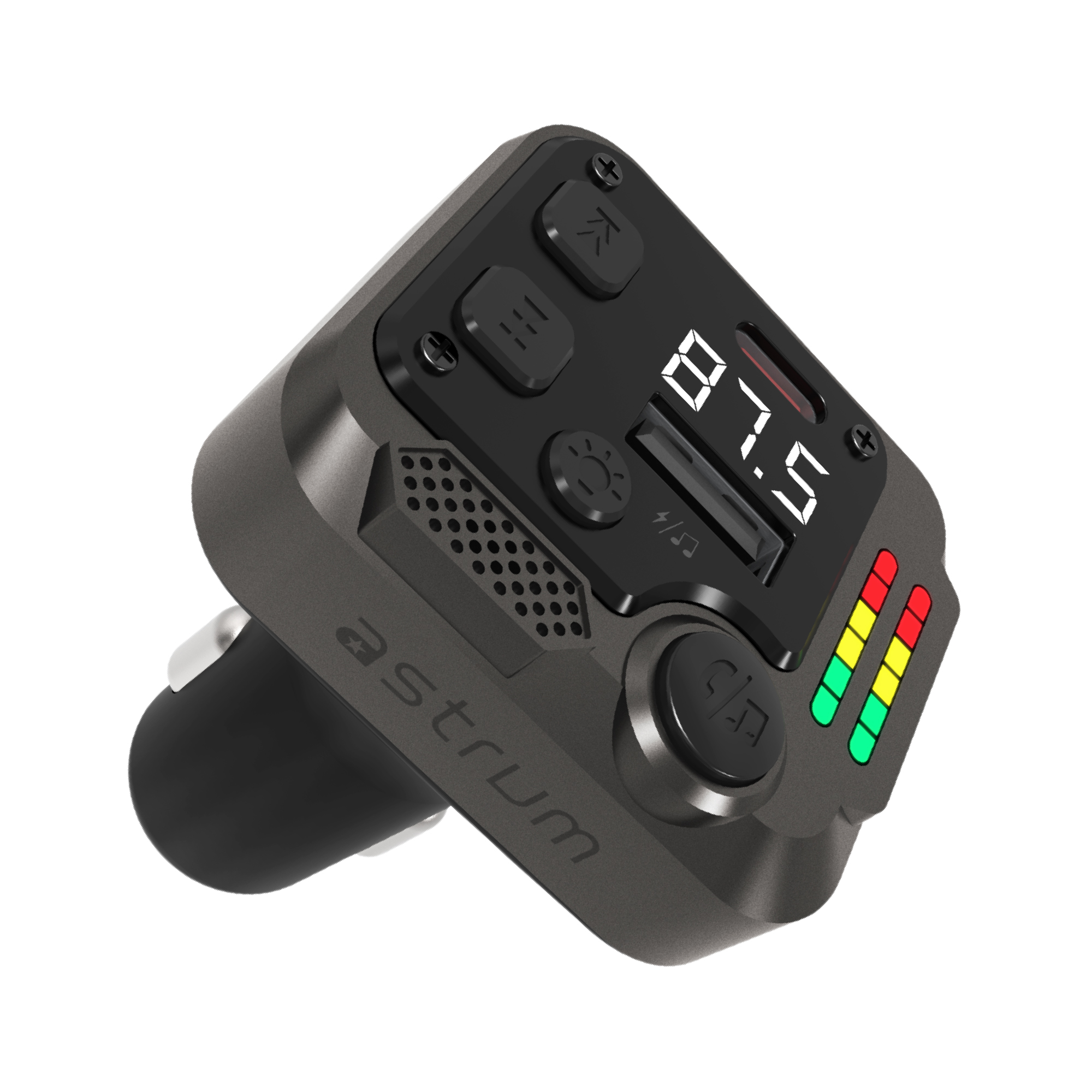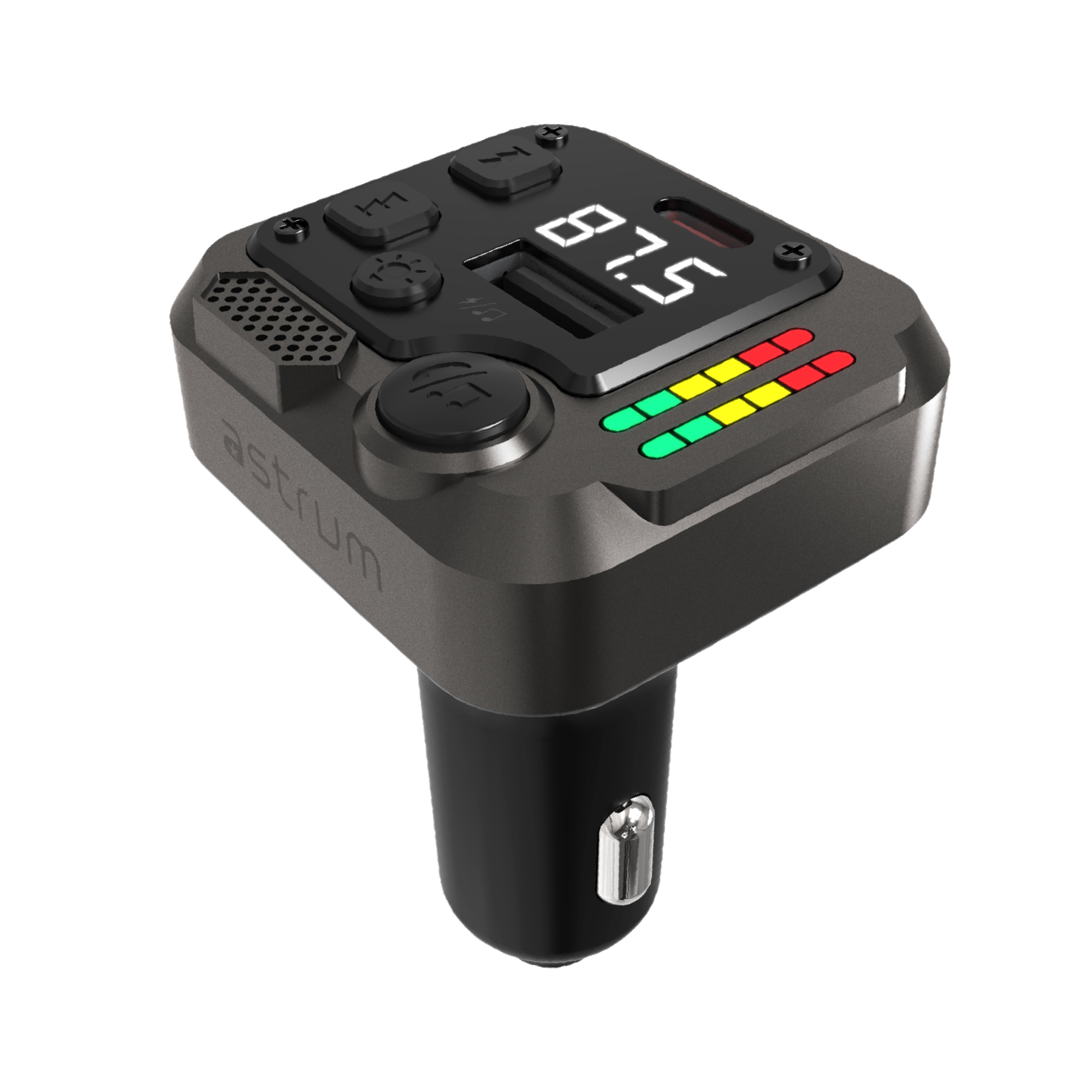 Redefine your in-car experience with the Astrum FM430 – a sophisticated Bluetooth FM transmitter engineered for performance, convenience, and style. Designed in a sleek 50g zinc-alloy frame, this compact device combines advanced PD30W USB-C fast charging with seamless wireless audio streaming via Bluetooth 5.3. Make hands-free calls with clarity using the built-in microphone, stream music through FM transmission or USB flash drives, and monitor your car battery in real time with the integrated LED voltage display. The LED spectrum lighting adds a touch of ambiance to your dashboard, while auto memory ensures a smooth ride every time by recalling your last frequency and track. Whether you’re on a daily commute or a long road trip, the FM430 is the smart, stylish upgrade every modern driver deserves.