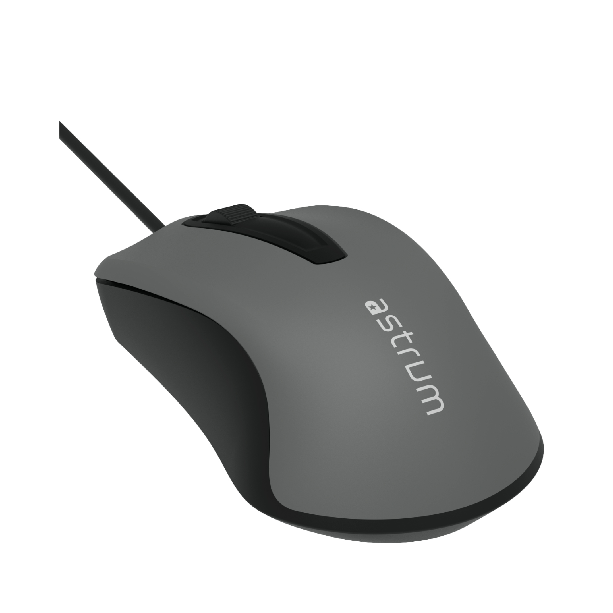 Astrum MU110 wired USB mouse, 1200 DPI, 3-button, sleek black/grey—smooth, accurate for home or office.